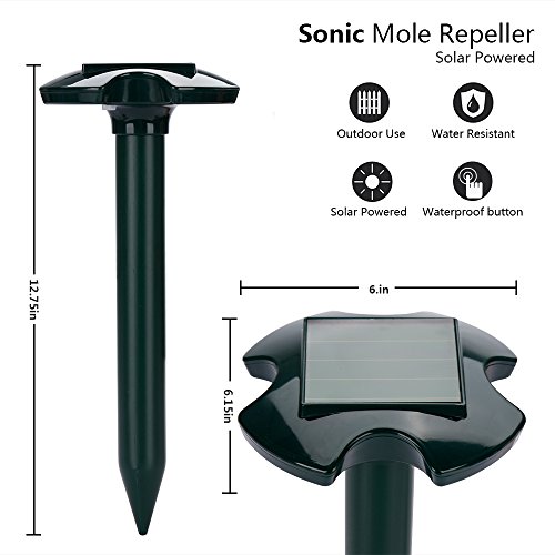 NETCAT-Solar Mole Repellent Pack of 2 Outdoor Sonic Pest Deterrent Mole Chaser Vole Eliminator Gopher Repeller for Yard Lawn Garden