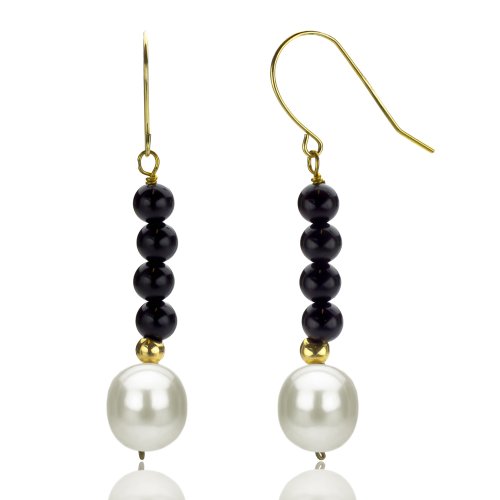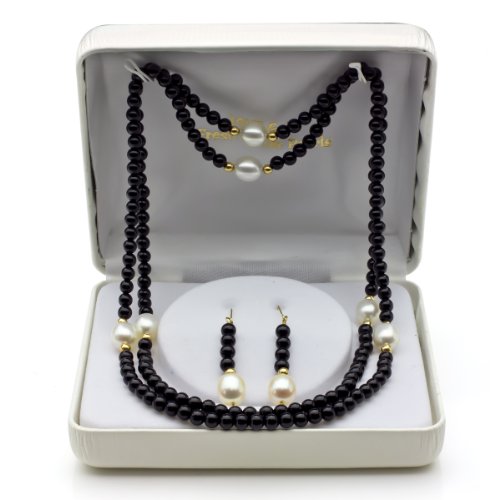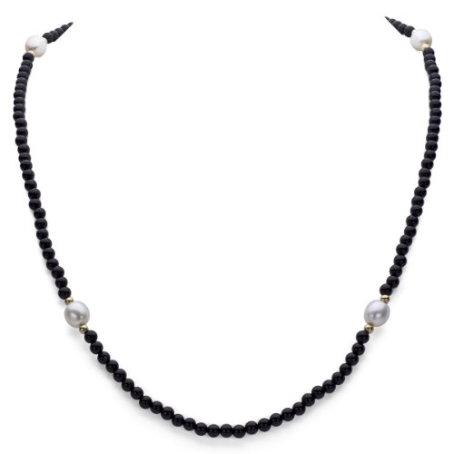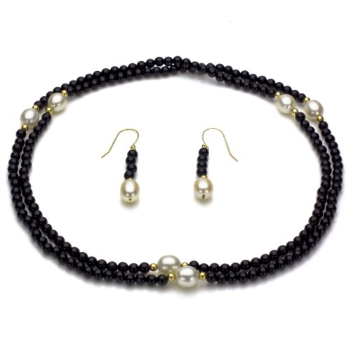 -. Title : 14k Yellow Gold 8-8.5mm White Freshwater Cultured Pearl and 3mm Simulated Onyx Endless Necklace Set