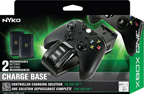 Conveniently store and charge two Xbox One Wireless Controllers with Nyko's Charge Base. The Charge Base comes with two NiMH rechargeable batteries that feature special contact points allowing for an easy drop in and charge power solution for your wireless controllers. The dual port recharging dock is AC powered, and plugs into any standard outlet, requiring no cables back to the console.Feature
