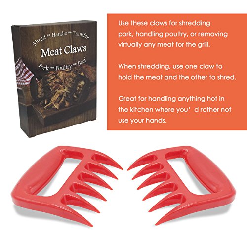 KIDAC Bear Claws Meat Shredder Heat Resistant Pulled Pork Claws Essential BBQ Tools (Red)