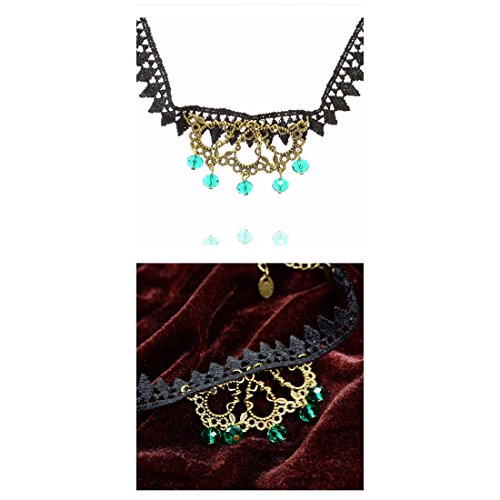 -. Title : Idin - Gothic vintage style black lace with green faceted bead adjustable anklet (Length: 9.5")
