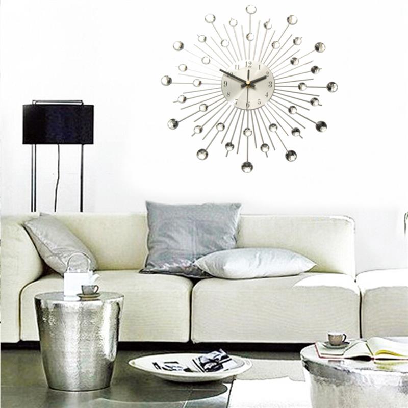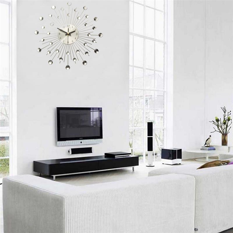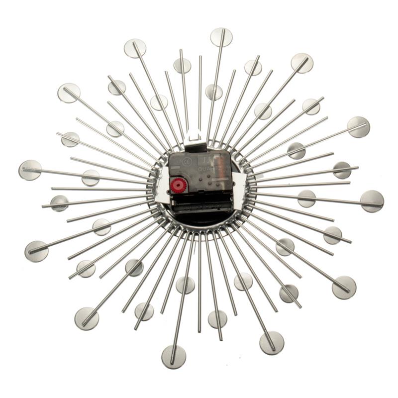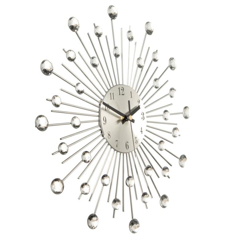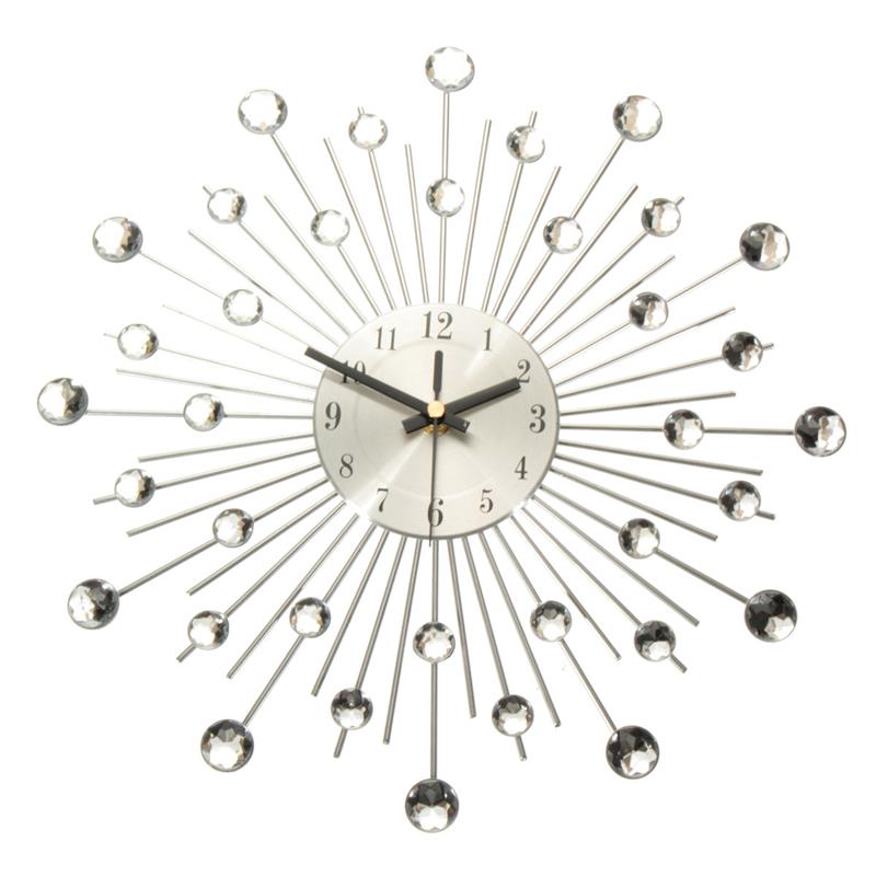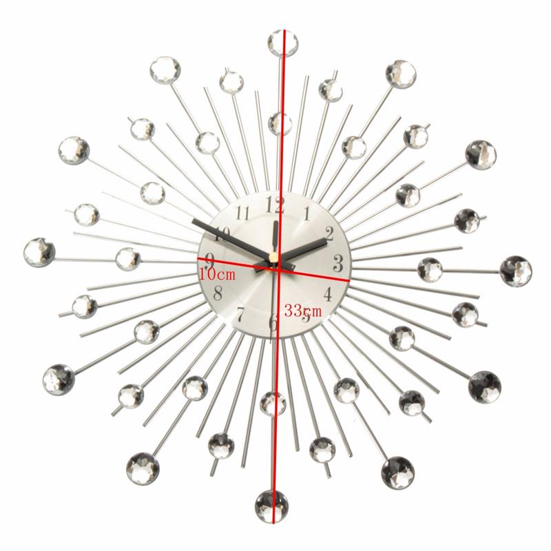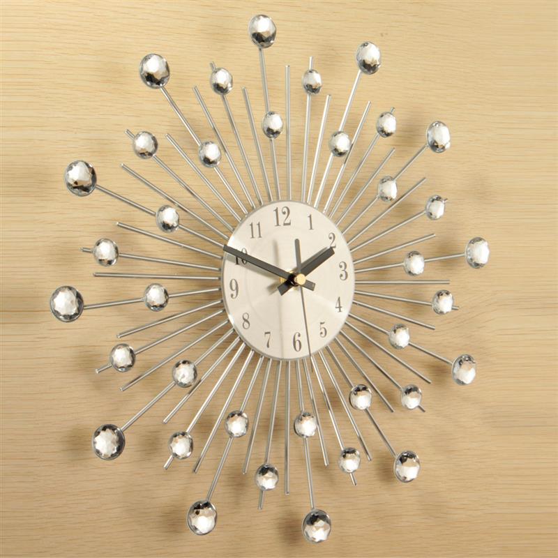 NEW Clear Diamante Crystal Effect Jeweled Sunburst Silver Metal Wire Wall Clock-33cm