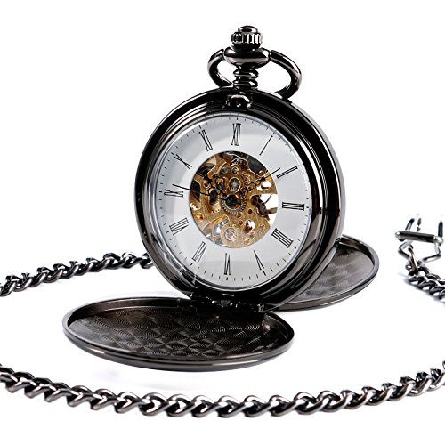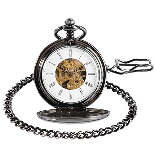 -. Feature : Hollow Full Hunter, Double Hunter Design / Black Smooth Case Desigh with White Dial Pocket Chain Analog / Mechanical Hand-winding Movement, Skeleton Roman Numerals / Full YISUYA Waranty 24 Month for RISK FREE Purchase / GENDER: Women, Boys, Girls, Men, Unisex, Lovers, Young or Older as A Gifts