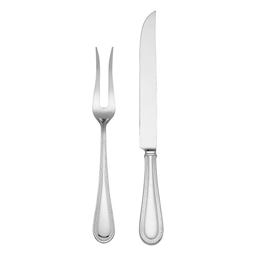 Featuring a classic beaded design on the handle, the Lyndon 2-piece carving set from reed & Barton offers style and grace to any setting. Made of durable 18/10 stainless steel, this serving set provides functional, easy care essentials for both casual and formal entertaining. The 2-piece carving set features the carving fork, which measures 10 inches length, as well as the carving knife which measures 13 inches in length. Elegantly boxed for gift giving.