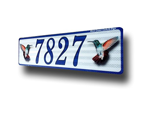 -. Brand : West Coast Curb-N-Sign -. Color : Full color -. EAN : 0751778862047 -. Feature : Customized for you with Numbers/Letters / Easy Installation / Impact resistant / High Intensity Reflective material for night visibility / Weather resistant to all temperatures -. HazardousMaterialType : ORM-D Class 8 -. Label : West Coast Curb-N-Sign -. Manufacturer : West Coast Curb-N-Sign -. Model : West Coast Curb-N-Sign -. MPN : Address Plate -. PartNumber : Address Plate -. ProductGroup : Home Improvement -. ProductTypeName : HARDWARE -. Publisher : West Coast Curb-N-Sign -. Size : 5X20 -. Studio : West Coast Curb-N-Sign -. Title : Hummingbird, Curb, Mailbox, House Address Plaque, Reflective -. UPC : 751778862047