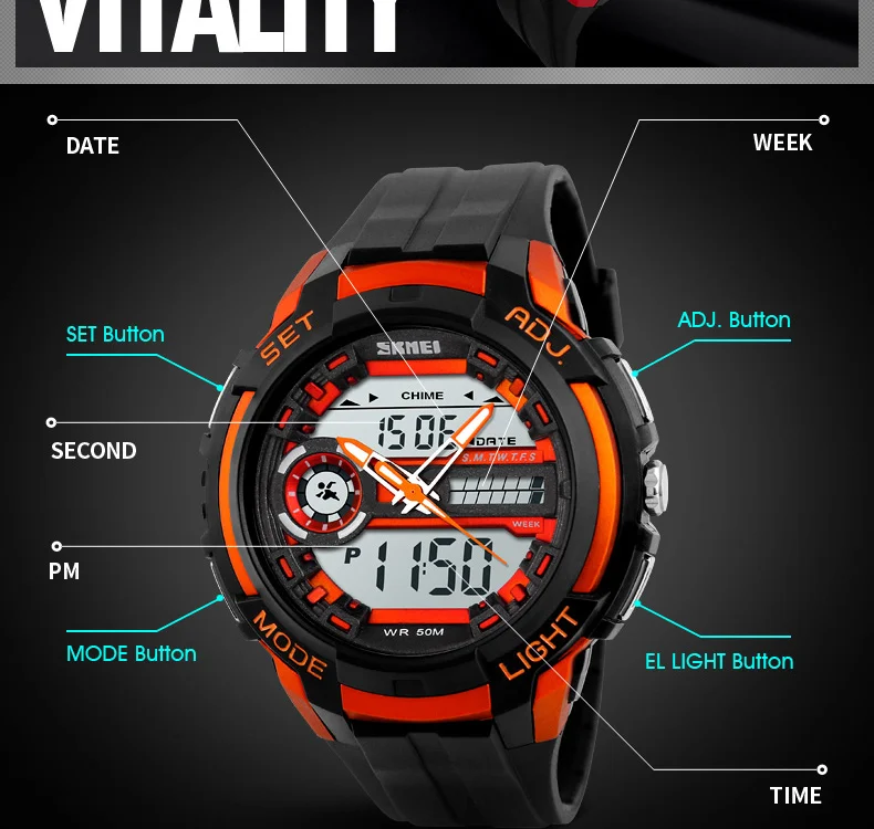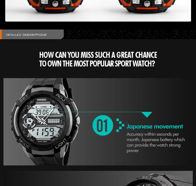 Feature:Auto Date,Week Display,Water Resistant,Back Light,Chronograph,Alarm