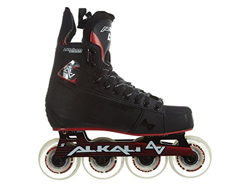 ReleaseDate : 2012-05-15 Studio : Alkali Hockey Publisher : Alkali Hockey Binding : Sports Product Description The Alkali CA7 roller hockey skate is an advanced level skate from Alkali Hockey. The CA7 is a step up from the CA5 in that it includes Surlyn quarter panels for increased rigidity and response and also a brushed Microfiber liner for better comfort and increased moisture wicking abilities. The CA7 also features an aircraft grade Aluminum chassis with Labeda Dynasty wheels and more advanced Swiss Lite bearings. 0