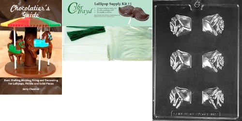 Cybrtrayd 45StK25GRBk-F112 3-D Rose Lolly Chocolate Candy Mold with Chocolatier's Bundle, Includes 25 Lollipop Sticks, 25 Cello Bags, 25 Green Twist Ties and Chocolatier's Guide