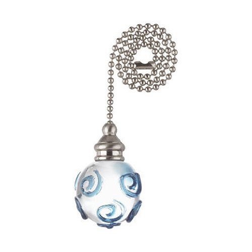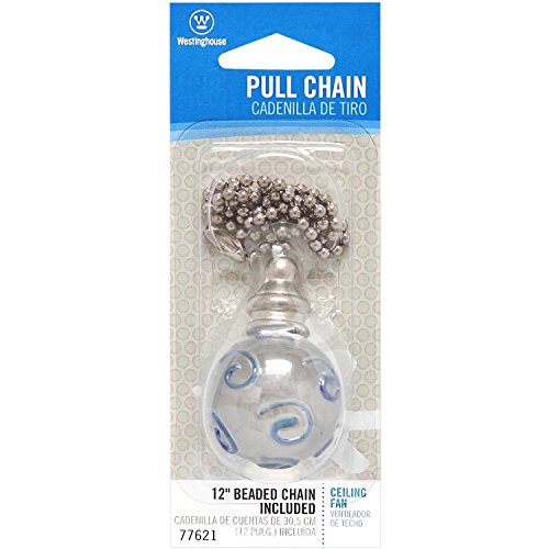 Add a fun accent to a fan or lighting fixture with this Westinghouse Clear and Blue Swirl Glass Orb Pull Chain. It features a spherical clear glass handle with large blue swirl overlays for an artistic, attractive look. The handle fixes to a 12-inch beaded chain via a silver-toned finial. It makes an ideal replacement for broken or outdated pull chains. Westinghouse is a global brand with a simple philosophy: make life easier for everyone who buys its products. The company offers ceiling fans, lighting fixtures, lighting hardware, ceiling fan accessories, and light bulbs for both consumer and commercial applications. Westinghouse products are designed for exceptional quality, reliability, and functionality. Product reference number 77621.Feature