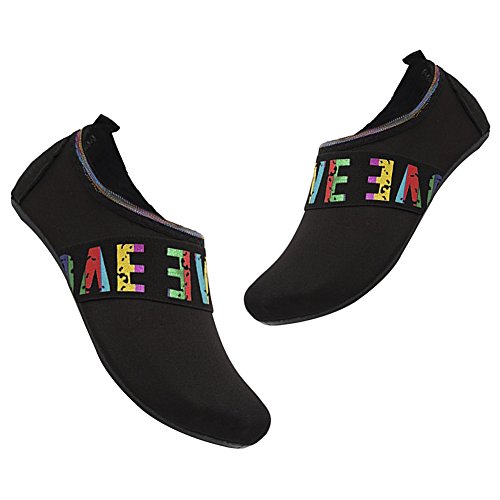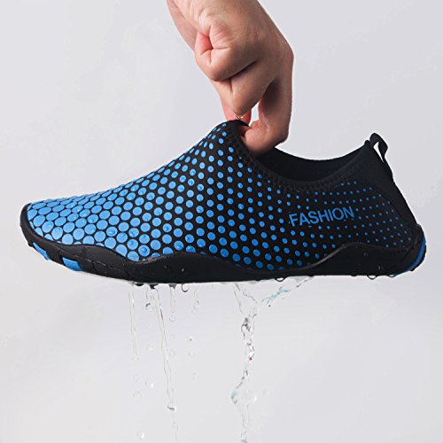 -. Feature : Material: 92% polyester+8% spandex Upper,the material upper makes water shoes breather and comfortable during water sports. / Unique Design: Breathable & Smooth fabrics is easy to put on and take off and also ensure proper water flow out / Occasion: Unisex water shoes for boys and girls.Swimming,Surfing,Yoga Training,Beach Volleyball,Sailing,Water Park,fishing,Walking along the Beach. / High quality fabric and anti-slip rubber sole makes foot more freedom and protect your barefoot from hurting during playing. / Ultra light-weight style, more breathable and smooth, allows all toes to move and articulate without restraint. Keep your foot light, cool, dry and comfortable.