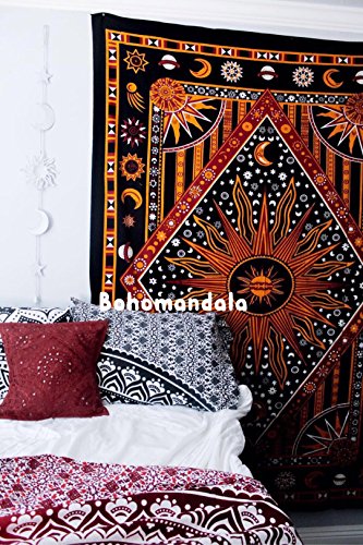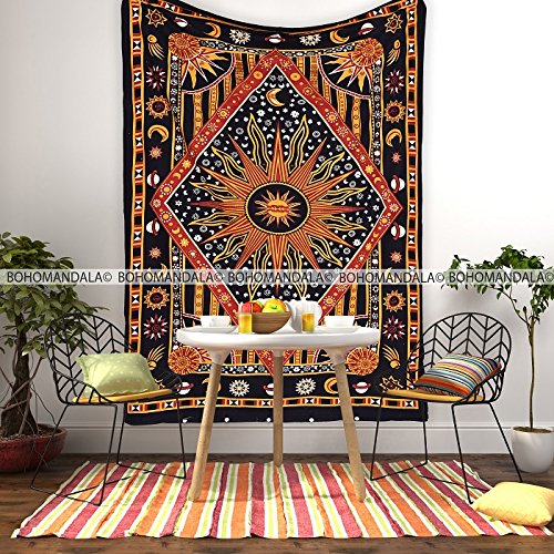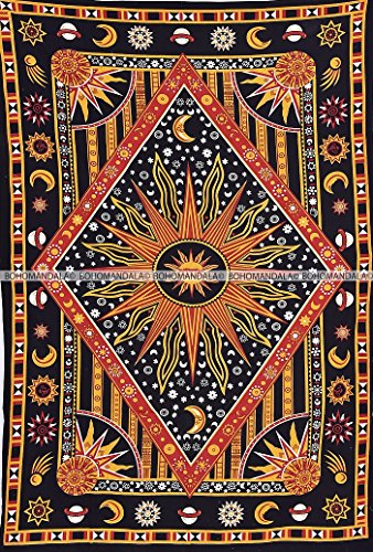 Zodiac Mandala Tapestry Celestial Wall Decor Burning Sun Tapestries Indian College Dorm Hanging Bohemian Hippy Hippie Gypsy Magical Thinking By Bohomandala