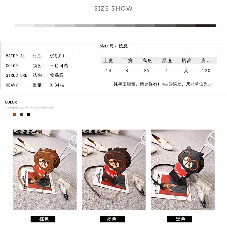 WHOLE BEAR MEASUREMENT : Top Width 14 Bottom Width 8 Height 25 Thick 7 Sling 120CM