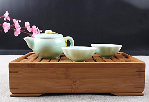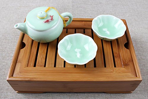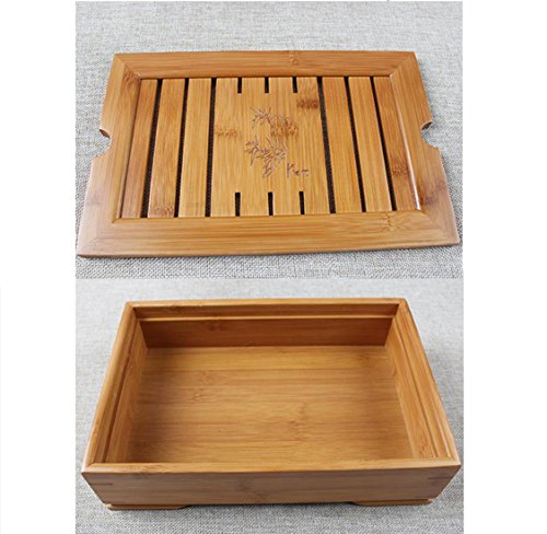 Studio : RQT Publisher : RQT Product Description Feature: Chinese Gongfu style tea requires pouring away the water used to warm the teapot, tea brewer and cups, and the first rinse of the leaves is also discarded. Slatted trays with a water collection basin makes it easier to serve the tea. Preheat and rinse your cups and teapot using the interior of the tray to catch the waste water. Water then drains through the holes in the removable bamboo top, flowing down into the main part of the tray below. Tray size: 11 (L) x 7 (W) x 2.5 (H) inch. This is a small tea tray use it when you travel, or you wan have a tea set with tea tray for your tea party, it s great piece for making chinese Kung fu tea. 0