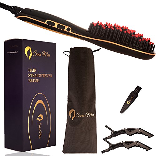 - ONE YEAR WARRANTY WITH MONEY BACK GUARANTEE: We offer a one month, no questions asked money back guarantee if returning an unopened product plus a one year full covered warranty; if you are not completely satisfied with our product, contact us immediately to rectify the situation; we want you to be happy with your RISK-FREE purchase of the SARA MOR HAIR STRAIGHTENING BRUSH shipped with a free travel bag, cleaning brush, and hair clips; BUY WITH CONFIDENCE