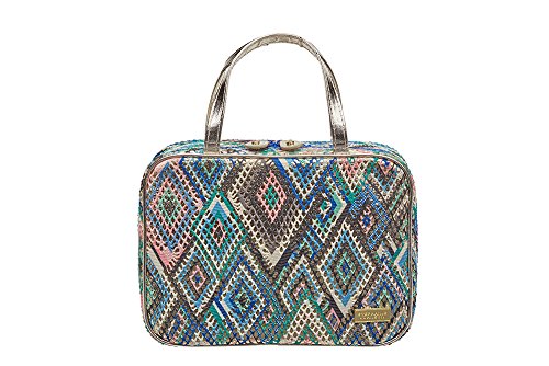 -. Feature : Two snap-out mesh pouches, a removable toiletry pouch, a clear zip pocket, a snap-out mirror, a zip-around closure with two tab zipper pulls and two carry handles combine to make this one of the most highly functional cosmetic cases. / Store your cosmetics or take them with you in the snap-out mesh pouches and removable toiletry bag. The snap out mirror is perfect for touchups, and the carry handles make it easy to bring along wherever you're headed. / Modern glamour meets old-world mystique in a collection conjuring the vibrant spirit of Turkey's Grand Bazaar. Inspired by the geometric complexity of classic Byzantine architecture, metallic gold dots an eclectic diamond motif while dazzling metallic gold trim completes the look with flair. / 3.75x9.5x7.5 / At Stephanie Johnson, Travel Chic is more than just our motto. It's a lifestyle. It's about the intersection of fashion and function. It's about creating a stylish haven for all of the essentials that make you look and feel beautiful. It's about streamlining your suitcase, your carry-on, and your handbag. It's about having options - with bags that offer removable components and multiple compartments so that you can divide and conquer. It's about adding that irresistible pop of color, that gorgeous textile, that one-of-a-kind P.R.Int to your vanity, or to your life at 30,000 feet. It's about making it personal. It's about making it yours.