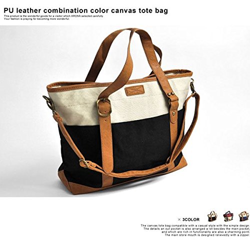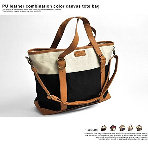 -. Title : (アローナ)ARONA PUレザー キャンバス 配色 トートバッグ ショルダーバッグ