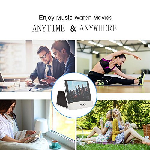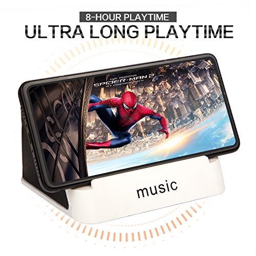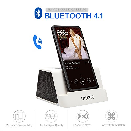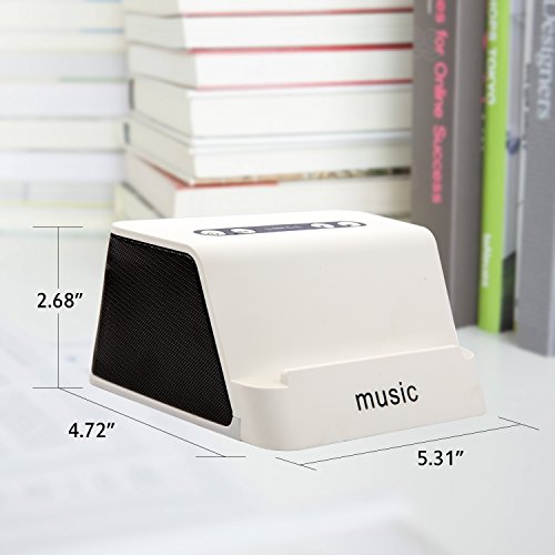 MOBILE PHONES /TABLETS BRACKET DESIGN TO RELAX YOUR HANDS & HI-FI STEREO SOUND: The slanted design to place your cell phones, tablets for optimal view, use it as phone holder while you are watching videos, browsing the web, cooking, etc. Built-in two 52mm speakers and dual 3w audio drivers, reproduce every note perfectly. You can enjoy clear stereo sound , perfect for home, office, school, outdoor relaxation use