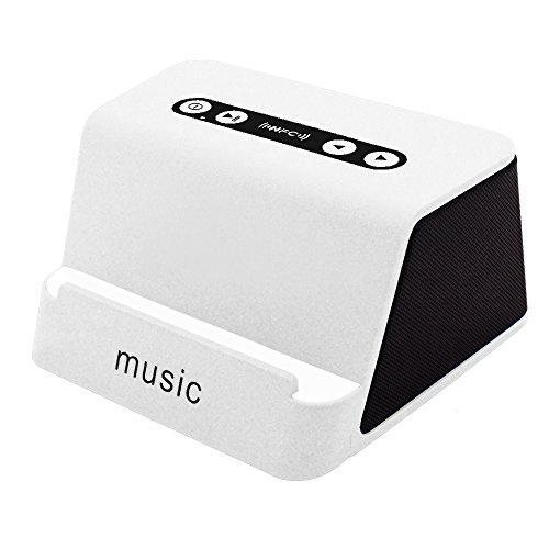 Bluetooth Stand Speakers Wireless Portable Stereo Sound Rechargeable Speaker with Mic Phone Tablet Holder Dock Design Hands-free and NFC for Office Home Bedroom Kitchen Indoor (White)