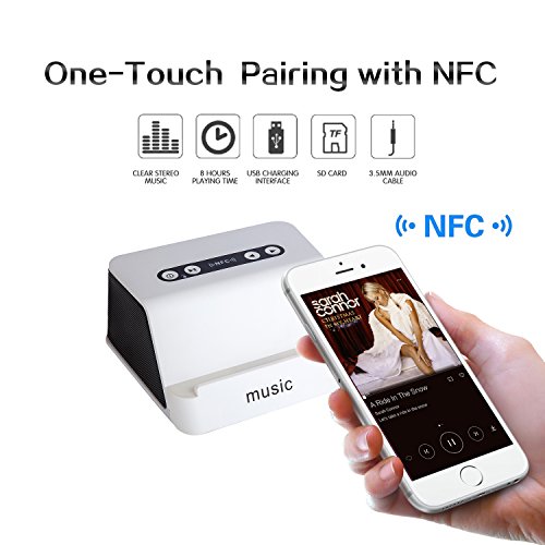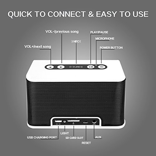 NFC (NEAR FIELD COMMUNICATION) & MICRO SD CARD & AUX CABLE INPUT: Convenient NFC connects Bluetooth simultaneously and automatically.Enjoy your favorite music at relaxed time by connecting the speaker with your NFC-enabled smartphone.In addition, play music automatically after inserting micro SD card and aux cable connecting your phones or PC