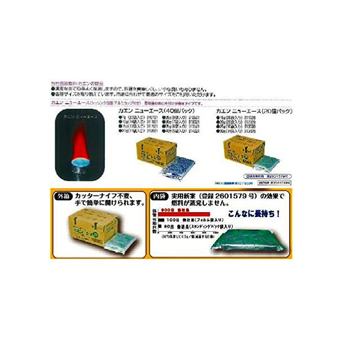 원본상품명: 固形燃料 カエン ニュエス [20g] [20個入] 小袋販