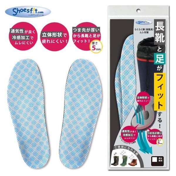 通気性が良く冷感加工でムレにくい!!レインブーツやワークブーツにも♪ 製造国:日本 素材・材質:ポリエステル、ウレタンフォーム 仕様:冷感加工 ※サプライヤー直送品 ご注文後3~4営業日後の出荷となります【商品名】らくらく隊(長靴用)ムレ対策インソール 男女兼用 1足(2枚入) L(25.5~26.5cm)