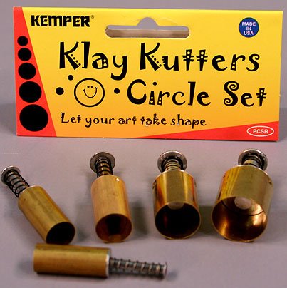 -. Binding : Kitchen -. Brand : Kemper -. Color : brass -. EAN : 3334490200037 -. Feature : High quality cutters are made of rust free brass with a spring loaded plunger center to pop out the cut out shapes. / Used for cutting shapes in clay, bread dough, gum paste, candles and more! / Use the inside of the cut out shape to decorate items or simply use the cutters to cut out shaped holes in clay. / This kit are 5 Circle Shaped cutters in the following sizes: 3/8", 7/16", 1/2", 5/8" and 3/4" diameters. / Made In USA -. Label : Kemper -. Manufacturer : Kemper -. MPN : KCIRCLE -. PackageQuantity : 5 -. PartNumber : KCIRCLE -. ProductGroup : Home -. ProductTypeName : HOME -. Publisher : Kemper -. Size : 3/8 7/16 1/2 5/8 3/4 -. SKU : 7948-4560 -. Studio : Kemper -. Title : Kemper Klay Kutters Circle Set Clay Bread Dough Modeling Paste Paint & More! -. UPC : 785370013163