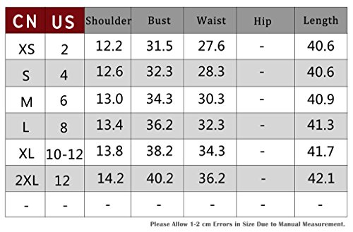 Sizes:Tag XS=US 2;Tag S=US 4;Tag M=US 6;Tag L=US 8; Tag XL=US 10/12; Tag XXL=US 12.Please Check Measurement Details in the Picture