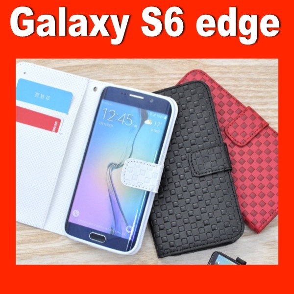 市松模様レザーデザインのGalaxy S6 edge(SC-04G/SCV31)用スタンドケースポーチ。