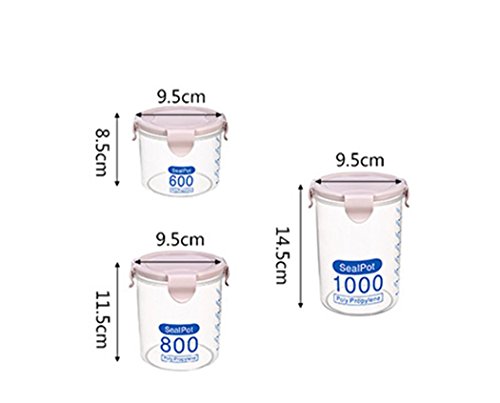 YOLALA Cereal Container Set of 3 Transparent Eco-friendly Plastic Seal Kitchen Food Storage Dispenser with Lids Blue 600-1000ml