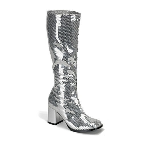 Womens Knee Boots 3 Inch Block Heel Sequins Sexy Knee High Silver