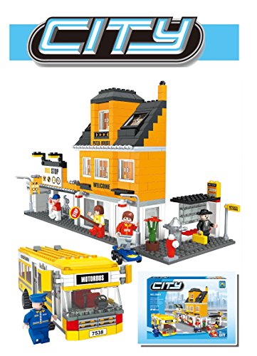-. Title : Ausini City Pizza Store Plaza with Transpiration Bus Building Bricks Kids Blocks Set, 546 Pieces