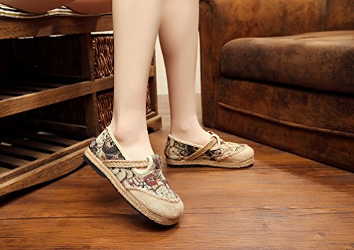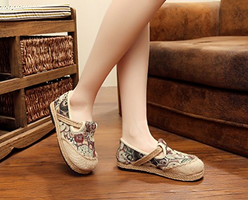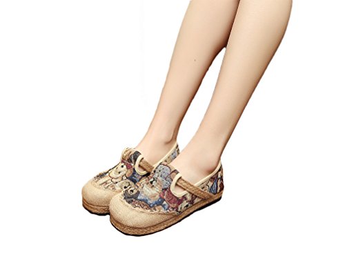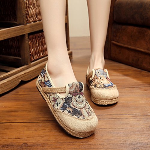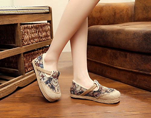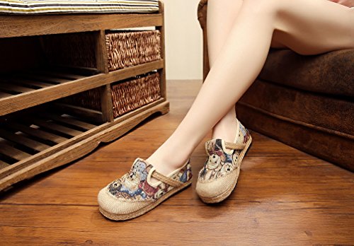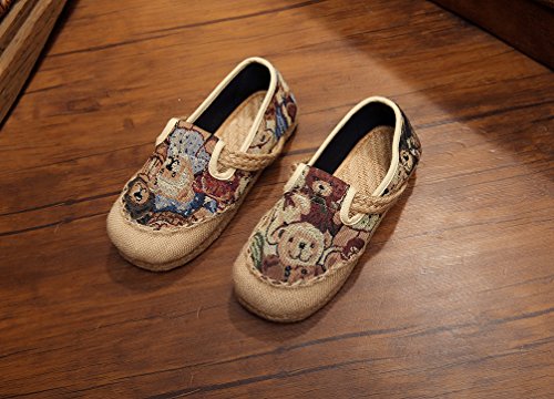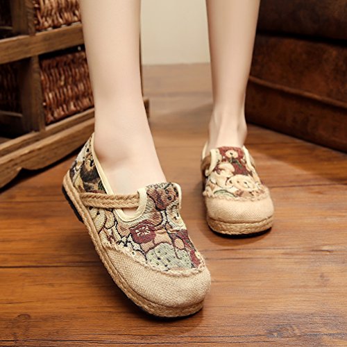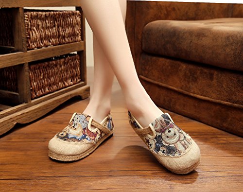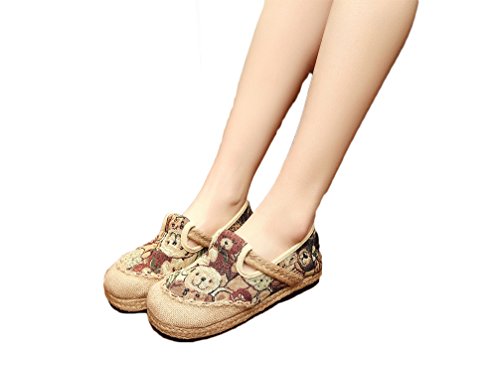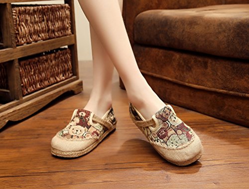 Product Description Bear pattern is so cute and suitable for the most women, when you wear it, you can easily enjoy these fresh and vigour bear patterns at vamp and it can make you happy all the time. Closed Toe can well protect your toes from hurting and lessen impact from the outside. Comfort linen insole achieves to bring you special down-to-earth and breathable feeling. Slip-on style does good to being easy on and off. Flat heel, textile upper and lightweight are suitable for daily wear. National style is filled with story and mysterious color. It is so distinctive because of this characteristic. Flats Shoes is designed for you to relax your feet in any time. Sufficient supplies and good pricing as well, not too expensive, is suitable for all working classes.