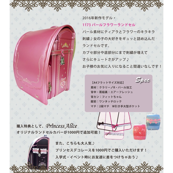 란도셀 무료!! 펄 플라워 란도셀 1173 A4 판플랫 파일 대응 클라리노 피트상 소녀 6년간 보증201