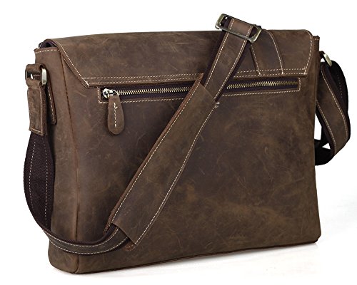 Tiding Mens Real Leather Messenger Shoulder Bag School Book Bag