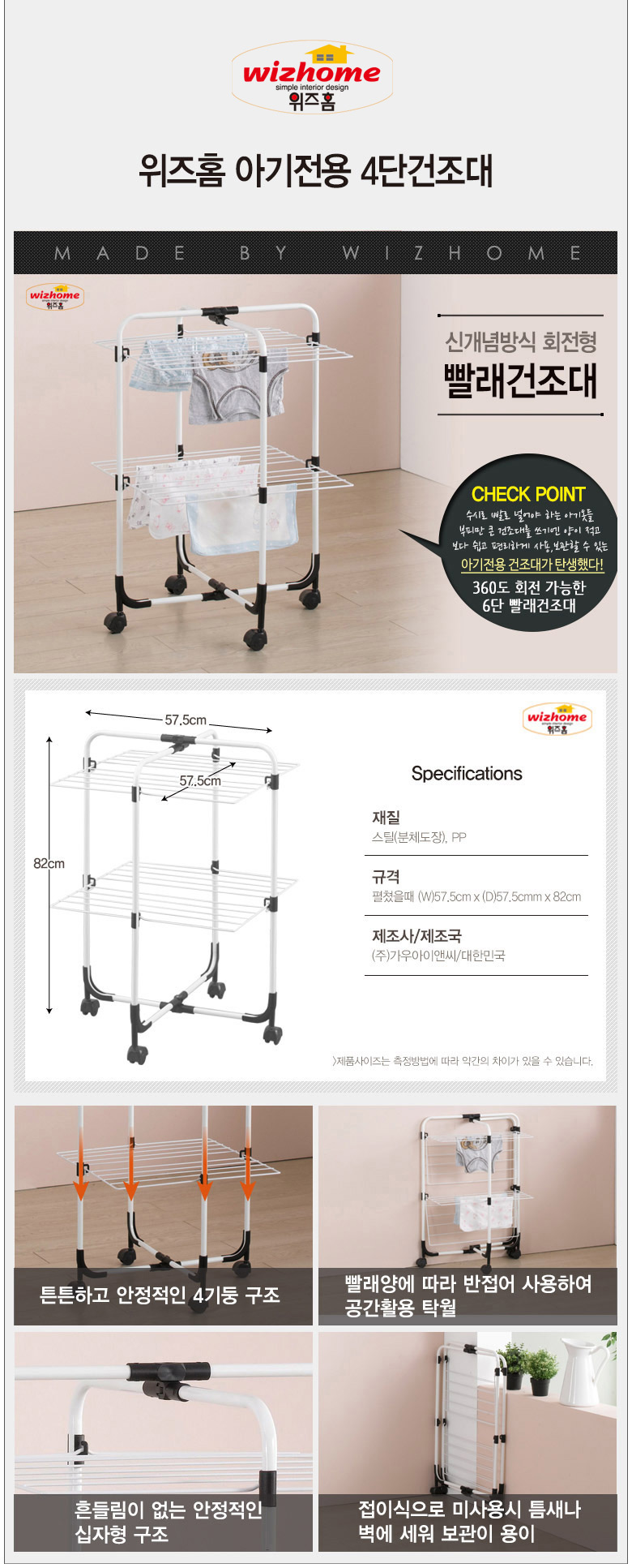 Folding crisscross wheels Indoor 4-stage laundry clothes rack for baby