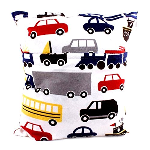 ★★★★★A truly wonderful bag that allows you to carry your wet and dry items in the same bag. Each bag contains a "wet" section that is sewn and sealed for no wicking or leaking AND a zippered dry section along with a clever snap handle for easy carrying. Carry all your items in one bag while keeping your dry items dry and your wet or soiled items separate. Truly an all in one bag! Size: 30cm x 36cm (approx.:11.5 in x 14 in) Holds approximately 5-7 cloth diapers *NOTE: Wash temperature: less than 86 degrees Fahrenheit to avoid the TPU from delaminating.Feature