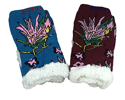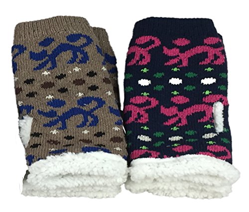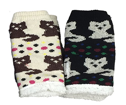 | (Alotta Knitz)/Accessories/Cold Weather Accessories/DIRECT FROM USA/Flowers Forget me not ,Kitty,Pattern Fuzzy Texting Gloves - 2 pack |