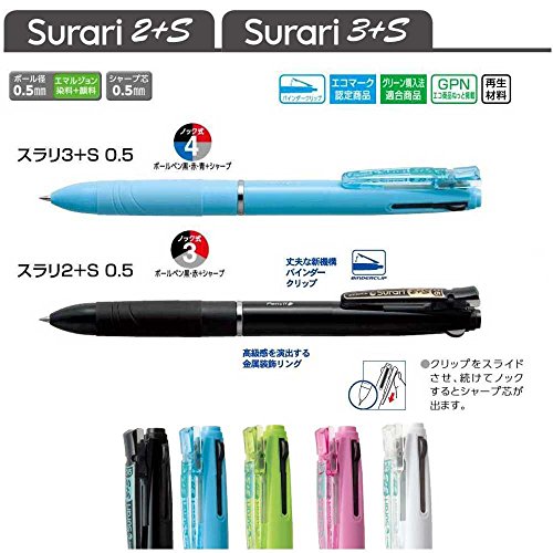 Zebra Multi Function Pen Surari 3+S, 0.5mm Ballpoint Pen Black & Red & Blue Ink, 0.5mm Mechanical Pencil, White Body