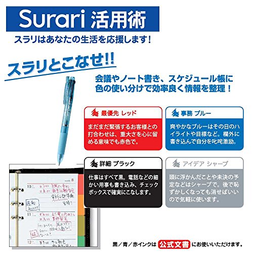 Zebra Multi Function Pen Surari 3S, 0.5mm Ballpoint Pen Black & Red & Blue Ink, 0.5mm Mechanical Pencil, White Body