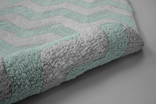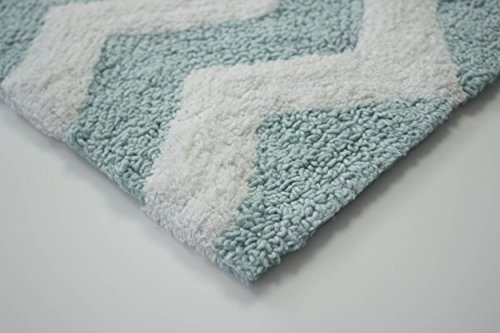 Jean Pierre Reversible Cotton Plush Zigzag 21 in. x 34 in. Bath Mat in Aquatic Blue