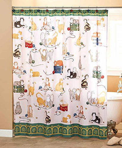 - Refresh your bathroom decor with the adorable Playful Cat Shower Curtain. Shower Curtain 70" x 72" Polyester Machine care. Imported.