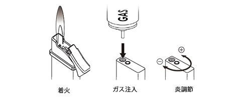 | 電子ライターは、カチッと音を鳴らして火花をスパークさせて着火する方式のガスライターです。メンテナンスはガスを補充するだけ! |