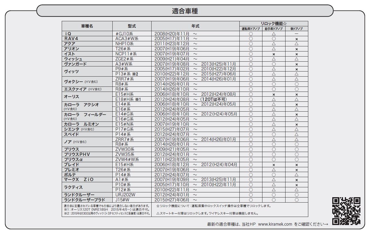 Kiramekku (KIRAMEK) emergency unlock function relock function with Toyota vehicles only vehicle speed interlocking auto door lock system SL30T