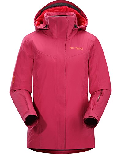 FEATURES of the Arcteryx Women's Andessa Jacket Waterproof Gore-Tex fabric provides protection from wind and moisture Down Composite Mapping places synthetic insulation in areas prone to moisture and down in the areas where warmth is most needed Insulated DropHood with adjustable drawcords fits over your helmet and is designed to rotate with your head WaterTight front zip covered with full length storm flap mesh backed PowderGuard underarm vents Detachable powder skirt with gripper elastic and snap closure e3D Ergonomic 3-Dimensional patterning for enhanced comfort and mobility Conforms closely to the body, trapping heat closer to your core Laminated Velcro? cuff adjusters Easy-sliding sleeve lining won't bind on other layers Adjustable hem drawcord helps to seal out cold drafts Articulated patterning and gusseted underarms for unrestricted mobility Micro-seam allowance (1.6 mm) reduces bulk and weight Taped seams for added weatherproofness Pit zippers for easy venting and temperature regulation Two zippered hand pockets, lower sleeve pocket, internal mesh dump pocket, secure zippered pocket with micro webbing zipper pulls Wind flap with snap closuresFeature