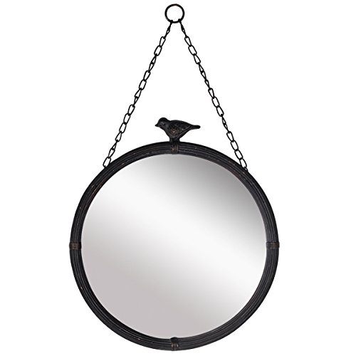NIKKY HOME 11.25" Vintage Round Metal Framed Wall Mounted Mirror with Bird, in Matt Black