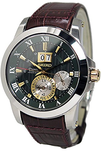 -. Title : SEIKO SNP127P1,Men's Premier Kinetic Perpetual,Stainless Steel Case,Leather Strap,Sapphire Crystal,100m WR,SNP127
