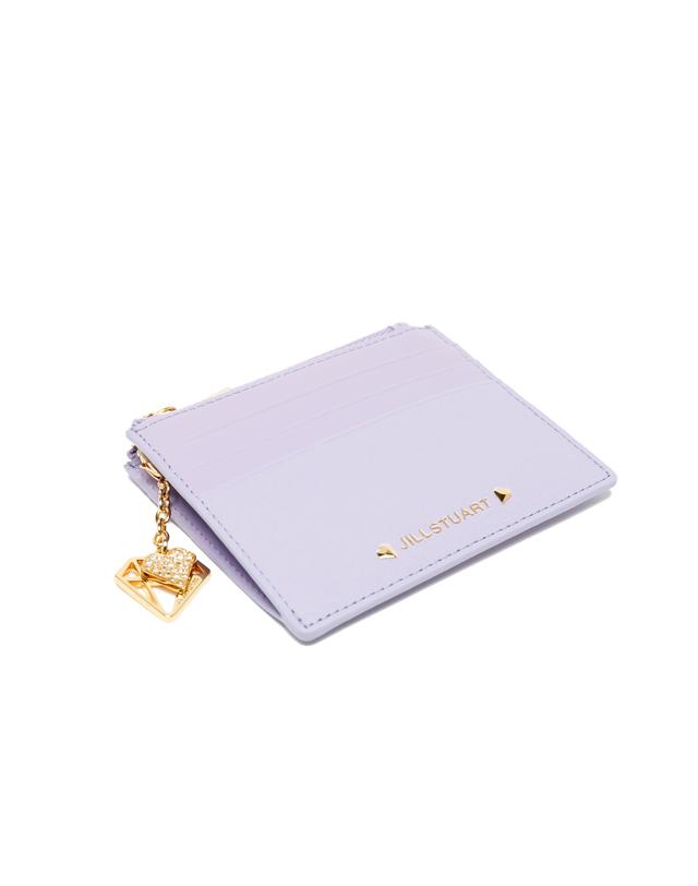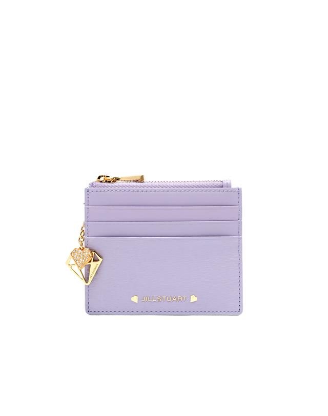 고급스러운 소가죽 바탕에 JLLSTUART 금장 로고 장식, 쁘띠 하트로고와 더블참으로 포인트를 준 카드지갑입니다.한 손에 들어오는 컴팩트한 사이즈와 동전 수납 공간이 있어 실용적인 아이템 입니다.