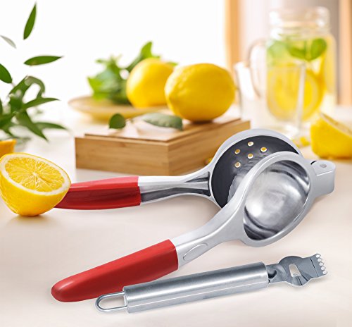 Studio : Aprika Publisher : Aprika Product Description 3 in 1 citrus squeezer, citrus zester and lemon sprayer set. Great for lemon, lime and other citrus fruits. GIFT IT! - It's the perfect gift set for a culinary student, seasoned chef, mom, girlfriend, friend, grandma, budding foodie or home cooking enthusiast! Give it for any occasion; housewarming, Christmas, wedding, holiday, hostess, new home, culinary student and more. Package include ?? 1 x lemon squeezer ?? 1 x lemon peeler ??1 x lemon spritzer THE SQUEEZER: Large capacity: accommodates medium or large lemons and small oranges Maximum juice - extracts high % of juice with minimal effort and you will have NO SEEDS in your juice Ergonomic design: easy-to-use, comfortable to squeeze in your hands, and sturdy enough to last for years to come. Easy to clean: run under tap water or put in dishwasher THE PEELER: Perfect for cocktails Five sharp zester holes quickly and easily zest lemons, limes, oranges and other citrus fruits, with minimum effort. Quality Comfort - stainless steel lasts a lifetime -Ergonomic design gives smooth, comfortable slip-free grip Easy to clean: dishwasher safe or you can run under tap water with dish soap THE SPRITZER Screws directly into the fruits like lemons, limes, oranges, grapefruits and other citrus fruits. Works great for salads, fish, lobster, crab, cocktails and any other dishes. Helps eliminate messes and juice from getting all over the place Warranty AN INVESTMENT FOR A LIFETIME: Invest in one manual lime / lemon / citrus juicer that comes with a lifetime warranty. if you're not in love with our citrus set for whatever reason, we'll give you a full replacement or refund-no questions asked. 0 |