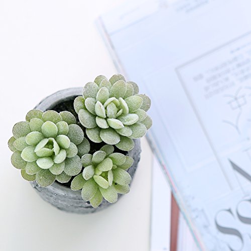 4 inch Realistic Artificial Green Succulent Plant Arrangement in Vintage Distressed Gray Ceramic Jar Pot