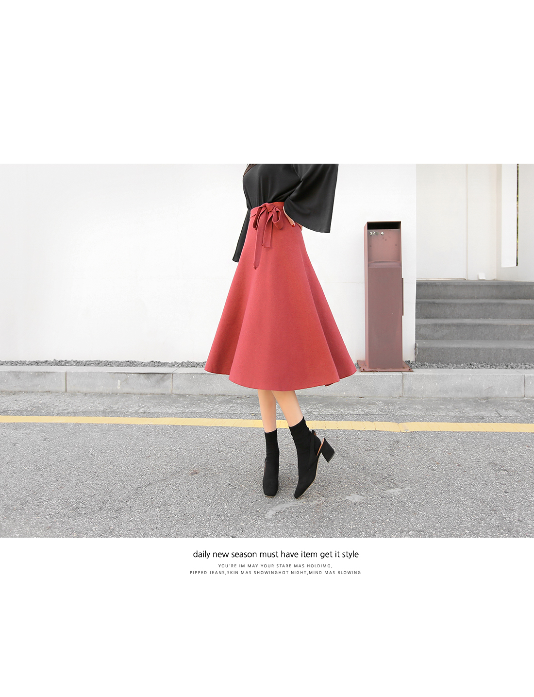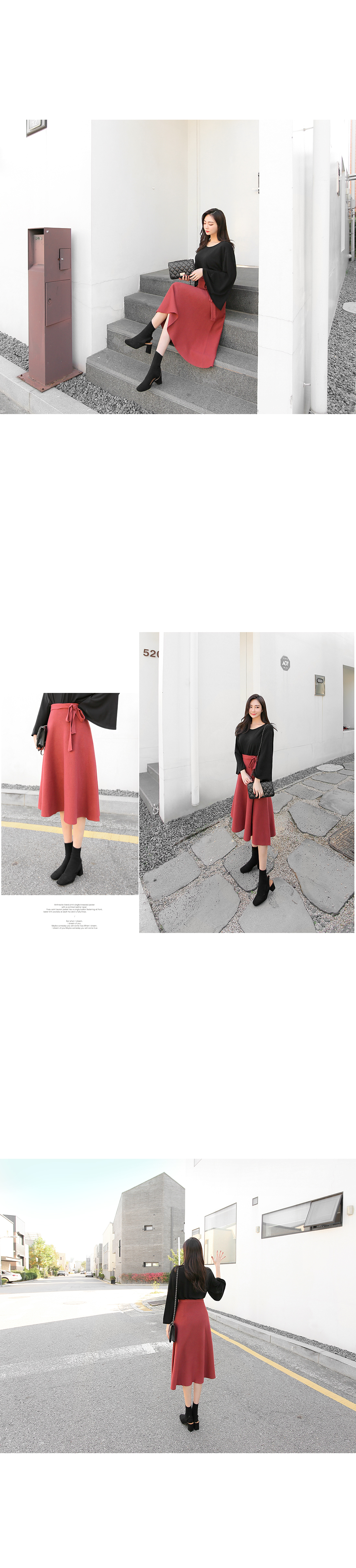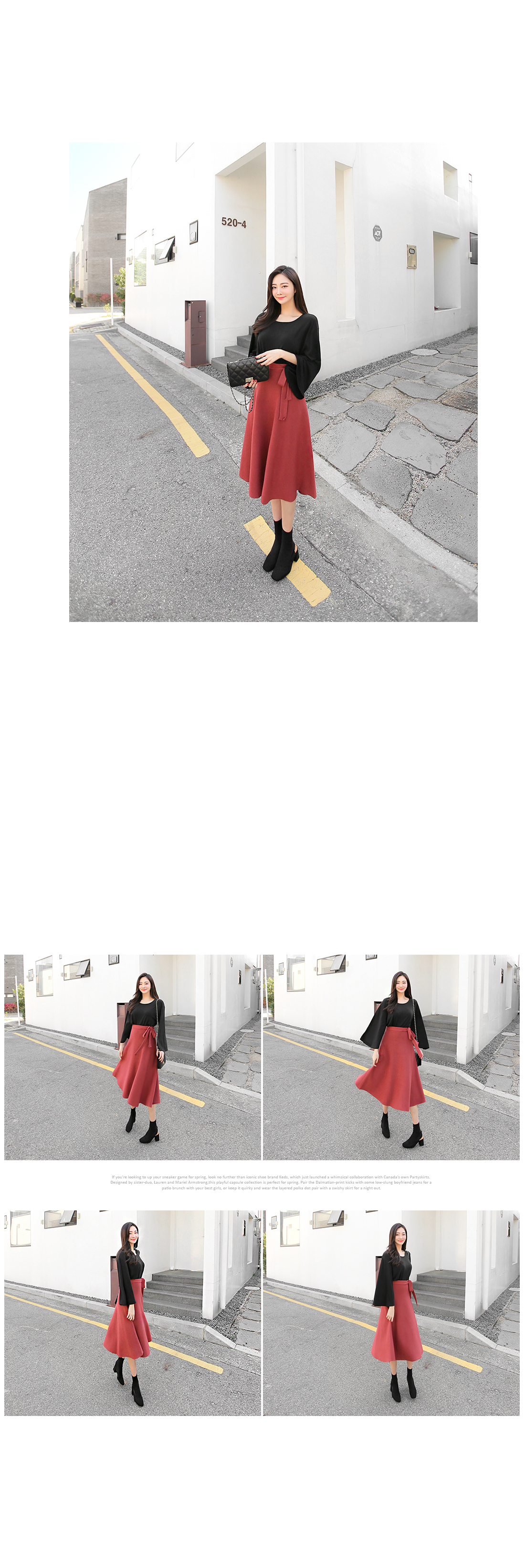 차분하게 드레이프지는 훌 실루엣이 예쁜 스커트에요.